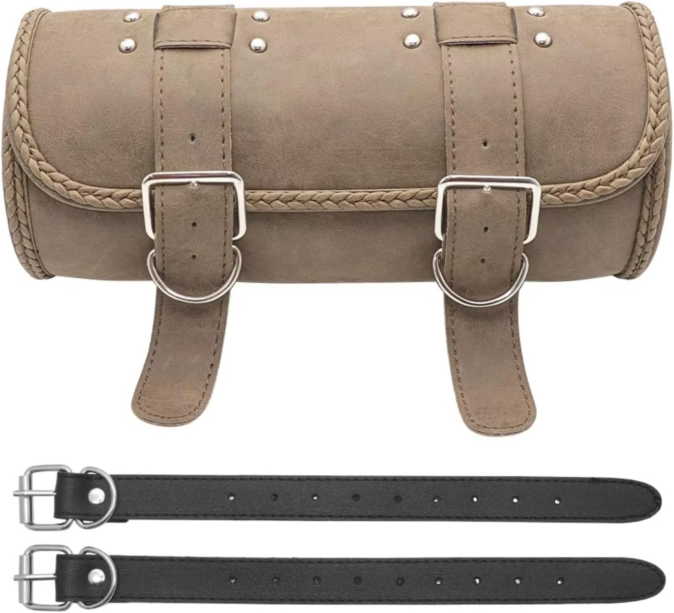 Motorcycle Fork Tool Bag PU Leather Saddlebag Handlebar Bag Waterproof Cycling Roll Storage Bag Universal Motorcycle Saddle Bags
