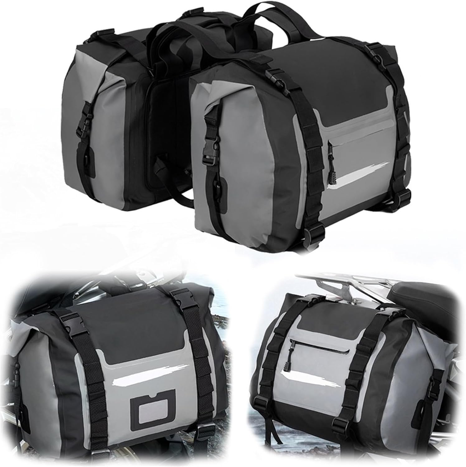 MAKUTU Motorcycle Bag For Kawasaki KLR650, 50L, Gray, Soft PVC, Seat & Handlebar Mount