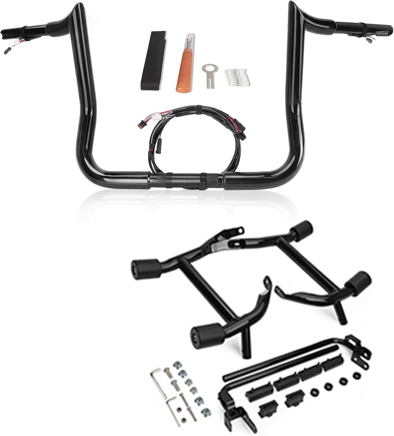 kekykkm 2016-2023 Rear Saddlebag Guard Crash Bar, 12" Prewired Heated Meathook Bar Ape Hanger Handlebar for Harley Touring Street Glide Electra Glide Ultra Limited Models