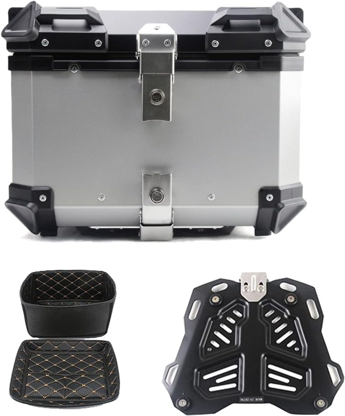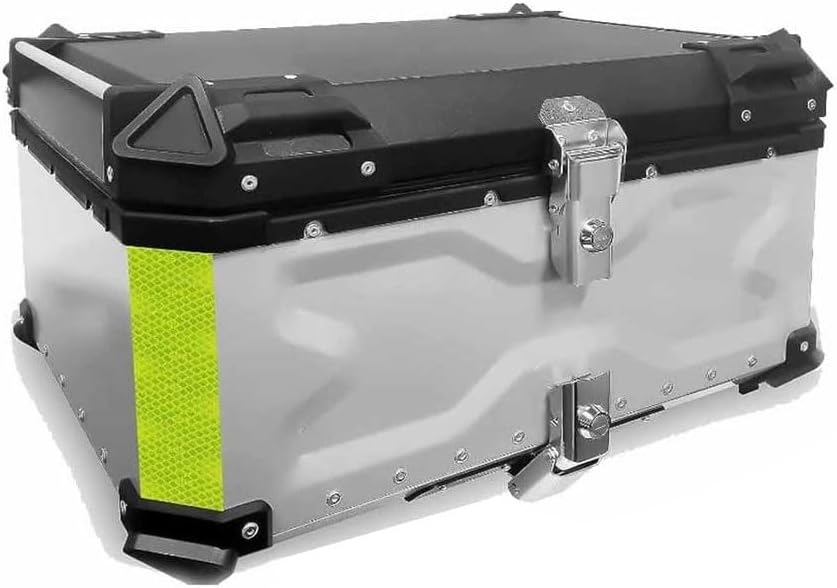 Motorcycle Top Case Waterproof Aluminum Tail Box with Security Lock, Motorcycle Luggage Tour Trunk 28L 36L 45L 55L 65L 80L 100L Universal Motorcycle Accessories Storage Carrier Case(Silver,55L)