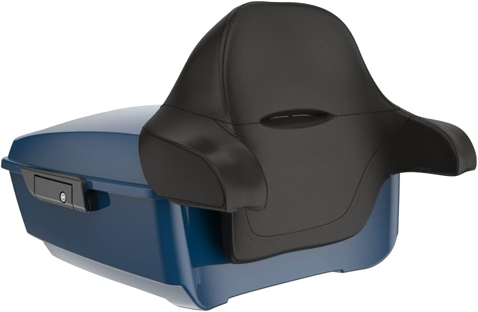 Motorcycle King Tour Trunk Pack with Backrest Pad Fit for 2014+ Harley Touring Street Glide - Reef Blue