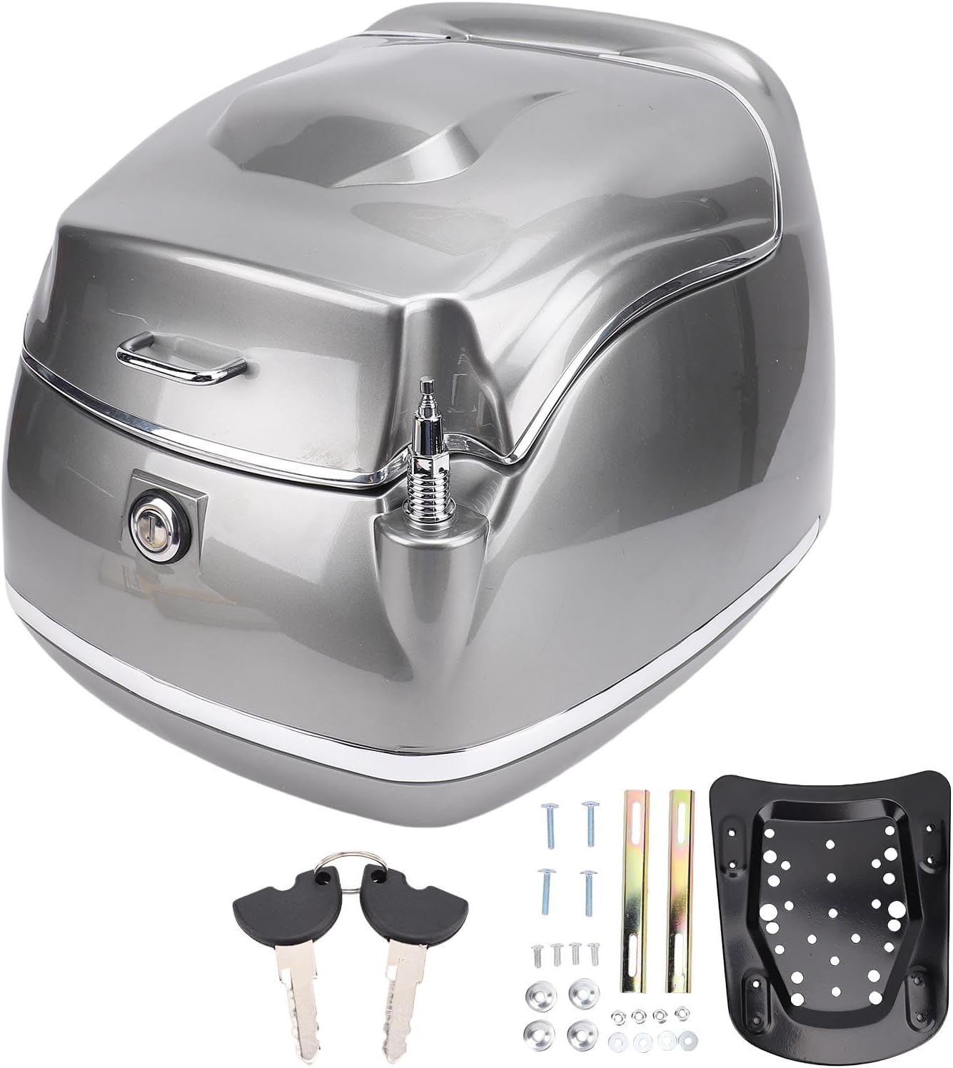 Asixxsix Motorcycle Tail Bag, 38L Retro Waterproofing Motorcycle Rear Case with Lock and Key, Universal Top Case for Electric Bikes Scooters (Moon Silver)