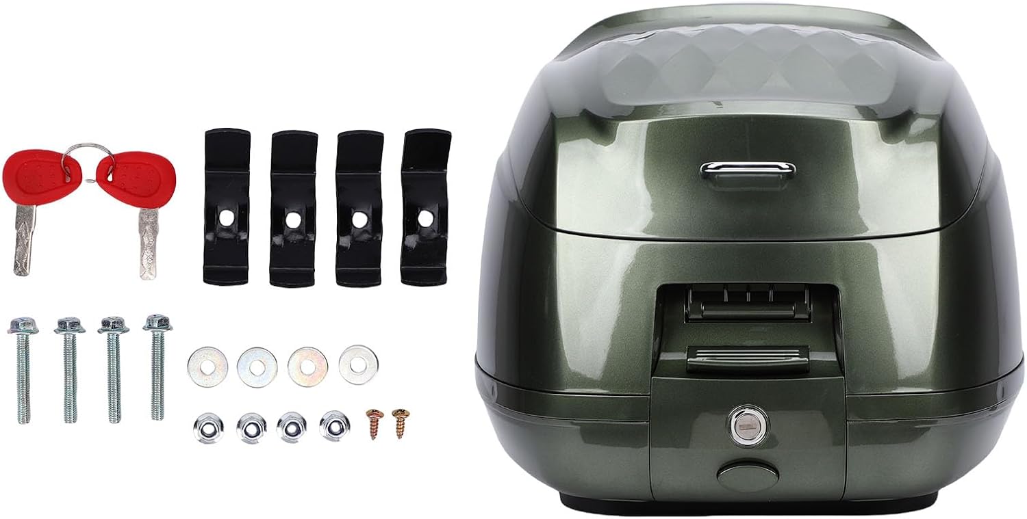 Motorcycle Top Case, Universal Motorcycle Tour Tail Box with Lock, 32L Motorbike Scooter Trunk Storage Carrier Helmet Hard Luggage Rear Box for Electric Scooters (Green)
