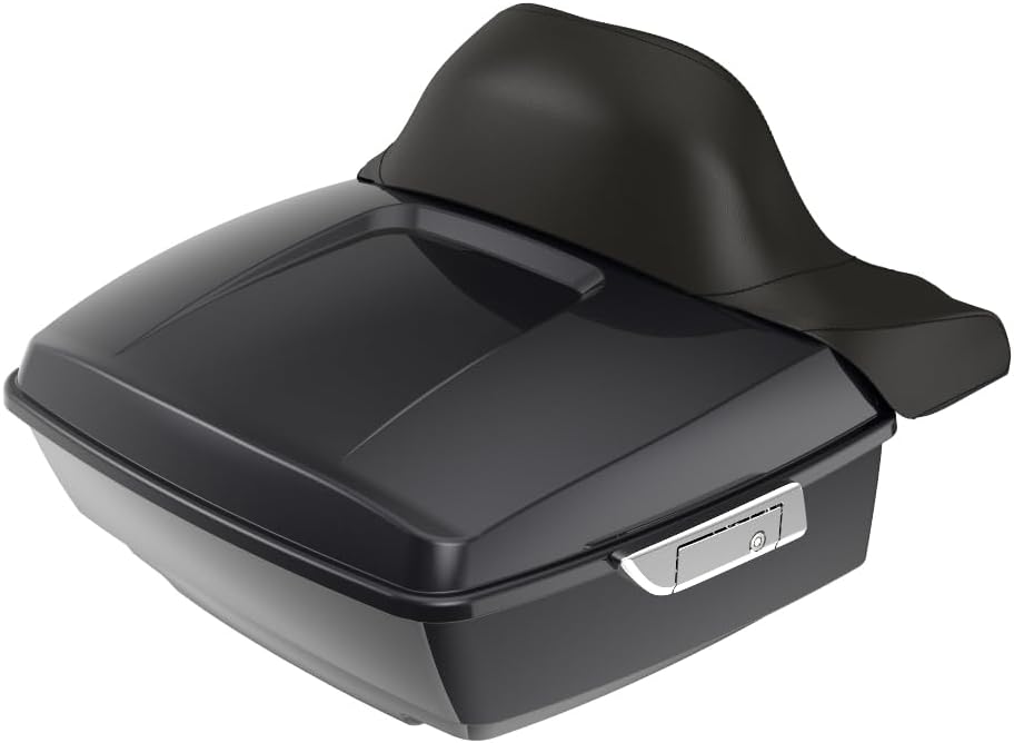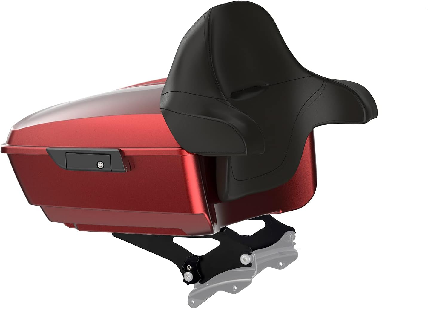 Advanblack Black Pearl Chrome Latches King Tour Trunk Pack Trunk Wrap-Around Backrest Pad for '97-'24 Harley Touring/Softail