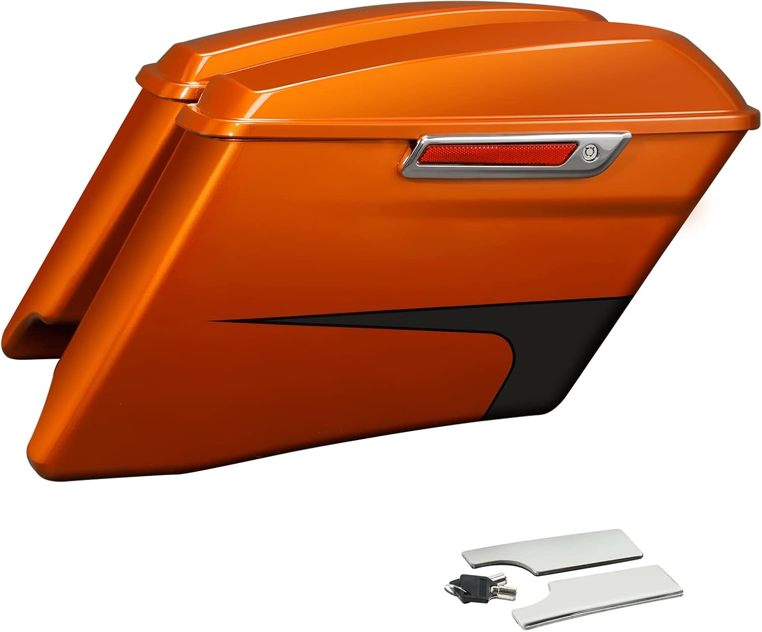 HR3 Color-Matched Scorched Orange/Black Denim 4 in. Stretched Hard Saddlebags Compatible with 2019 Road Glide Special & 2019 Street Glide Special & 2019 Ultra Limited (Replace for OEM)