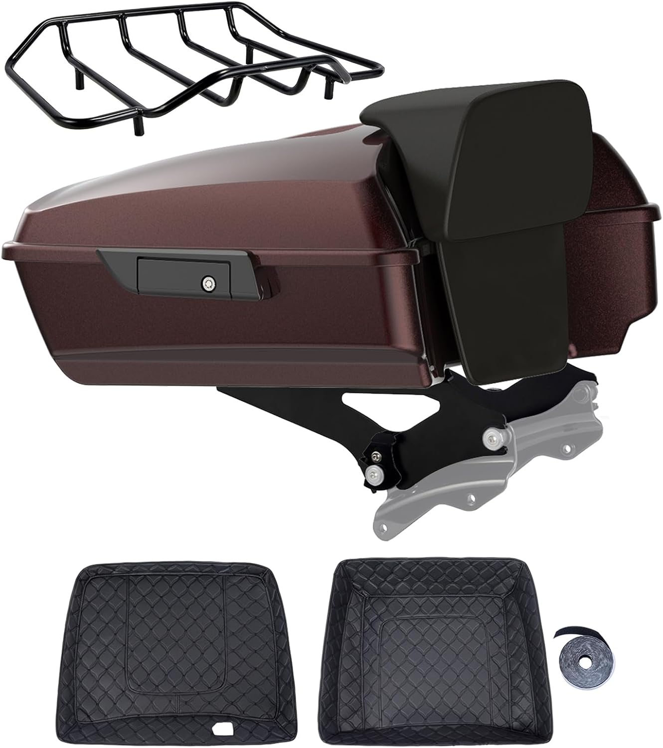Advanblack Chopped Tour Trunk Pack Fit for 2009+ Harley Touring Road Steet Electra Glide, Luggage Rack, Detachable Mounting, Stitch Liners (Merlot Sunglo, Black Latch)