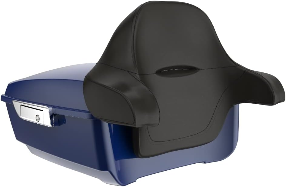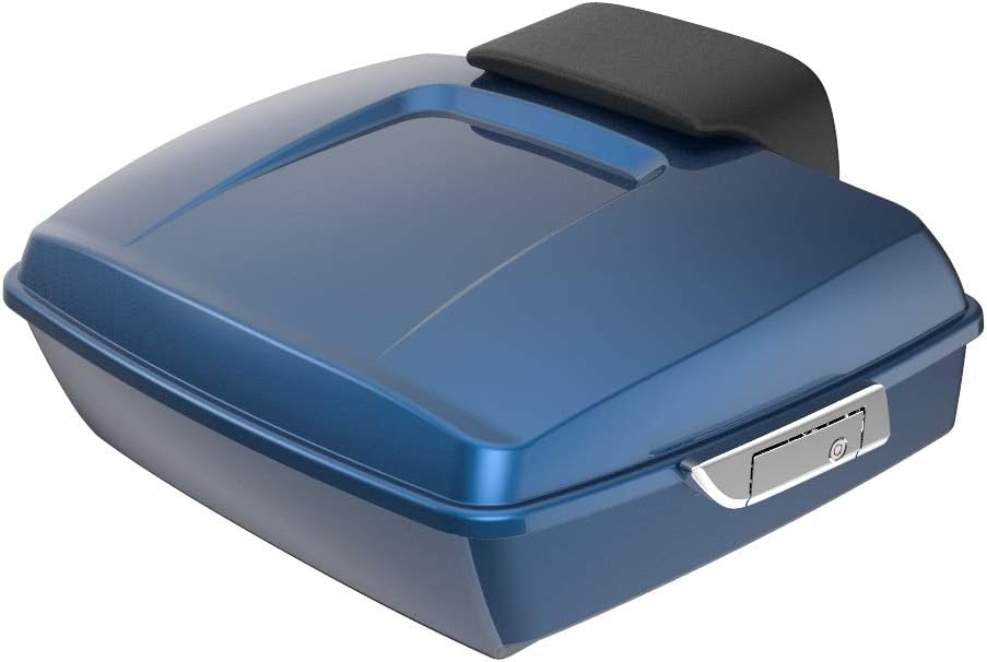 Moto Onfire Legend Blue Tour Trunk Pack Backrest Pad Fit for Harley Touring Street Glide Road Glide Special 2014-2020 (Chopped Tour Trunk Pack, Black Latch Hinges)