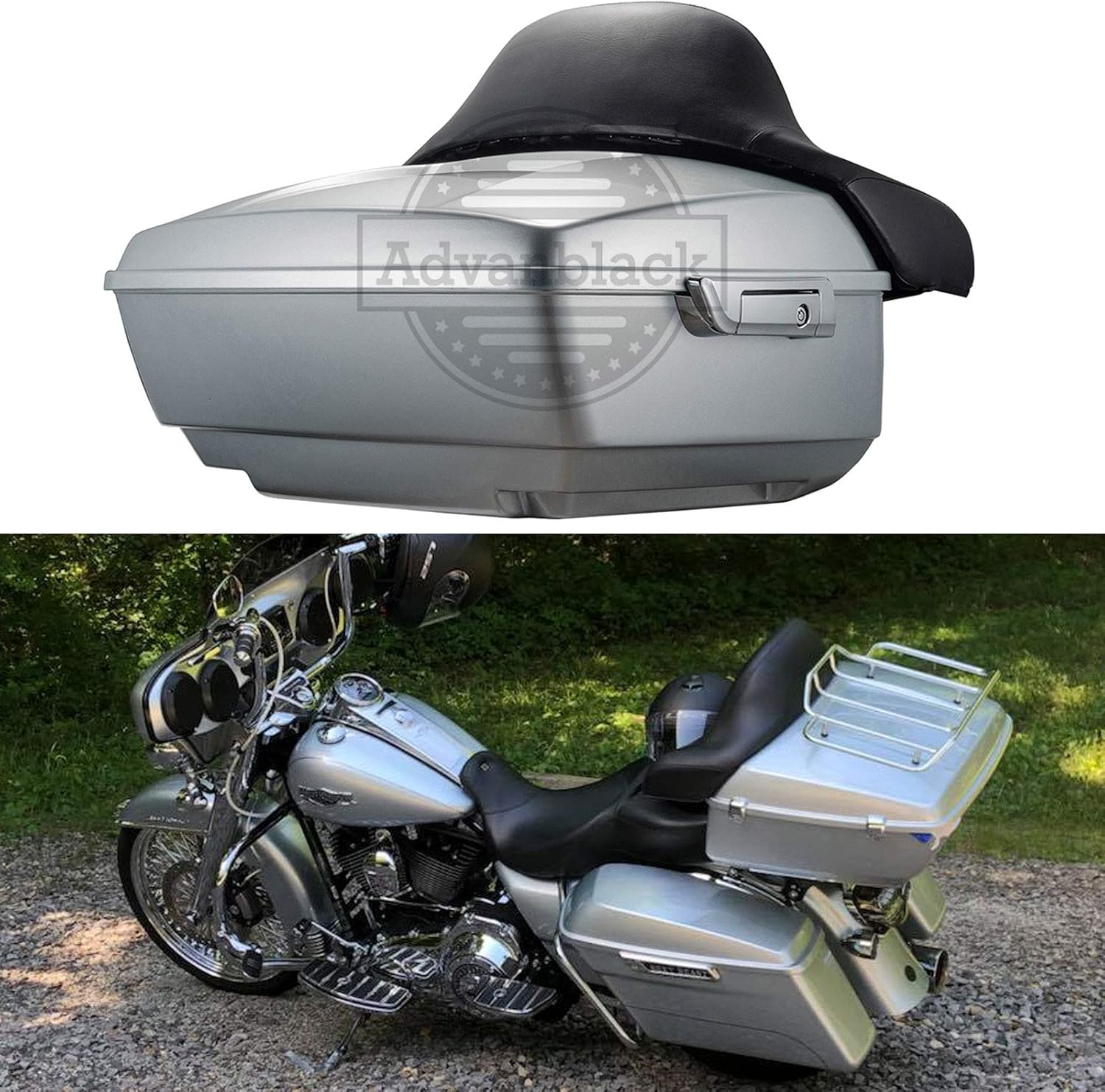 Moto Onfire Brilliant Silver King Tour Trunk Pack Tour Trunk Pack Big Backrest Fit for Harley Touring Road Glide FLTR FLH FLHX FLHR 1997-2018