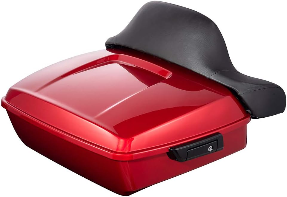 Moto Onfire Chopped Tour Trunk Pack, Wicked Red, Touring Bag, Wrap-around Backrest Pad Fit for Harley Touring, Road Glide, Street Glide, Road King Special, 2018 2019(Black Latch Hinges)