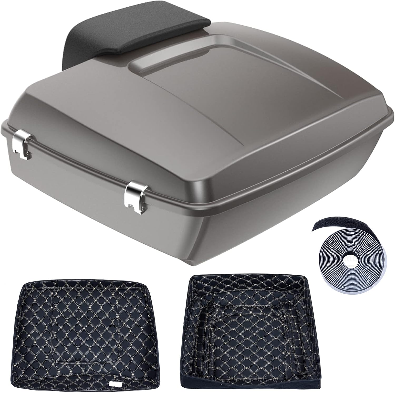 Billet Silver Chopped Tour Trunk Pack Chrome Latch Key Lock Fit for Harley Touring Road King Special Electra Glide Ultra Classic Road Glide Ultra 2017 (Tour Trunk Pack Liners, Backrest Pad)