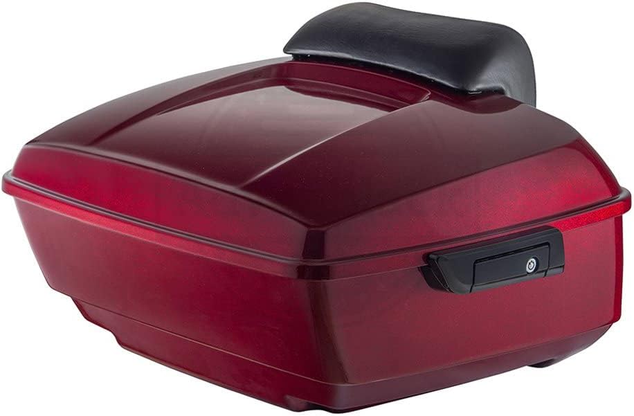 Moto Onfire King Tour Trunk Pack, Hard Candy Hot Rod Red Flake, Choppe Backrest Pad For Harley Touring, Road Glide Special, Street Glide Special, Road King Special, 2018 (Top Lid without Flame Mark)