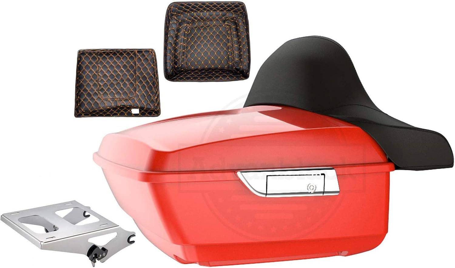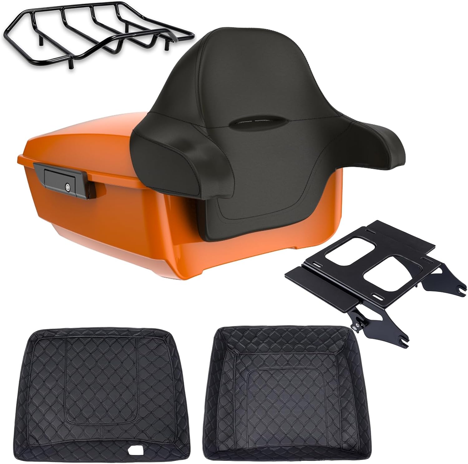 Harley Tour Pack Motorcycle King Tour Pack Luggage Bag For 2009+ Harley Touring FLH - Baja Orange, Top Luggage Rack, Detachable Mounting Bracket & Black Trunk Liners