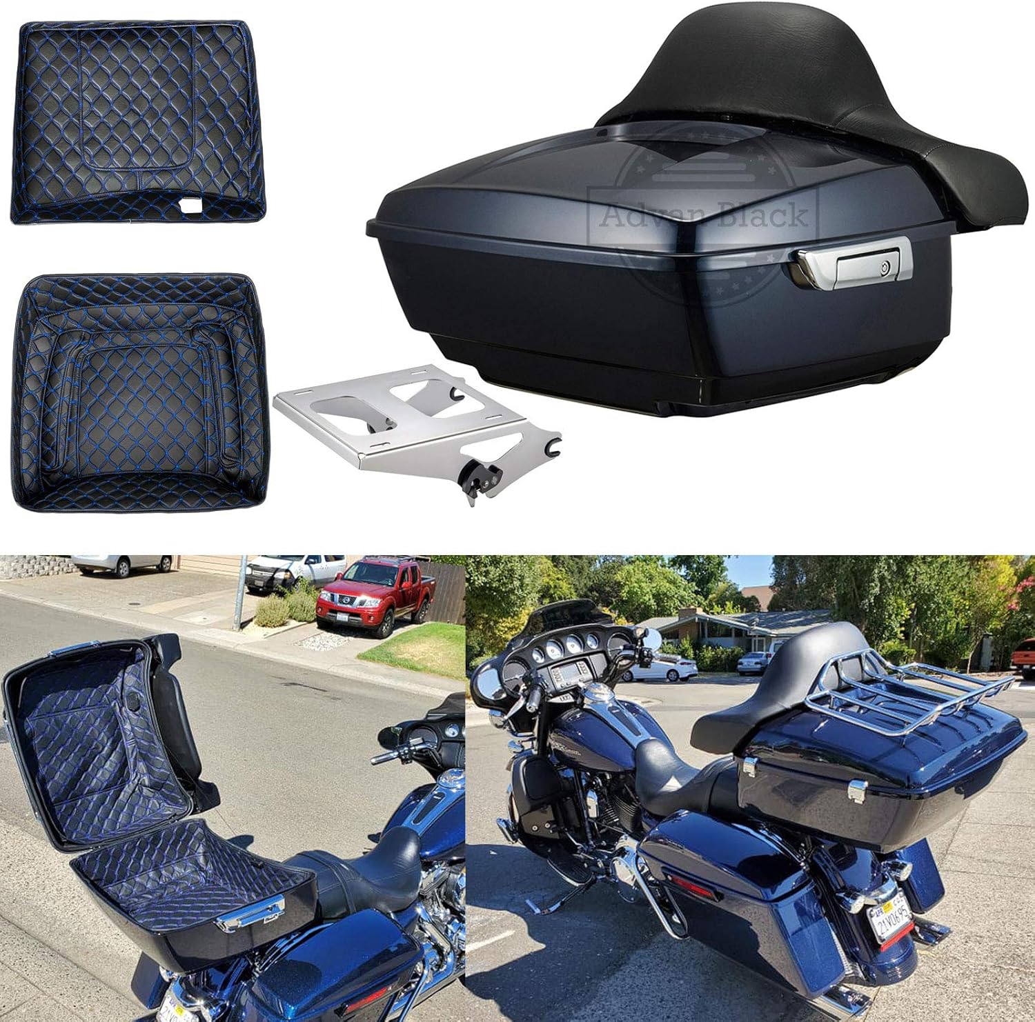 Harley Tour Pack Motorcycle King Tour Pack Fit for 2014+ Harley Touring - Big Blue Pearl, Chrome Detachable Mounting Rack, Blue Trunk Liners