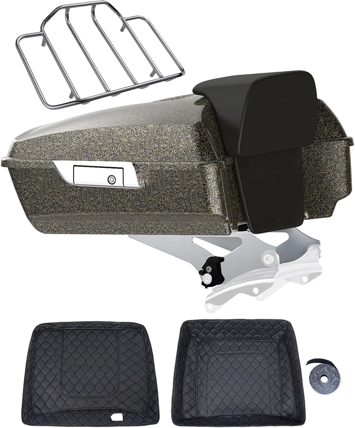 Advanblack Chopped Tour Trunk Pack Fit for 2009+ Harley Touring Road Steet Electra Glide, Luggage Rack, Detachable Mounting, Stitch Liners (Hard Candy Black Gold Flake, Chrome Latch)