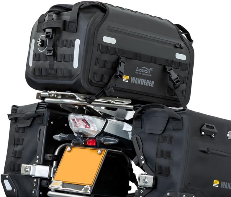 Loboo 50L WANDERER Tail Bag, Motorcycle Travel Luggage Bag with Motorcycle Helmet Storage Space, TPU Waterproof Fabric, Wear and Tear Resistant. Ideal for Skiing, Hiking, Camping, Rowing, Cycling