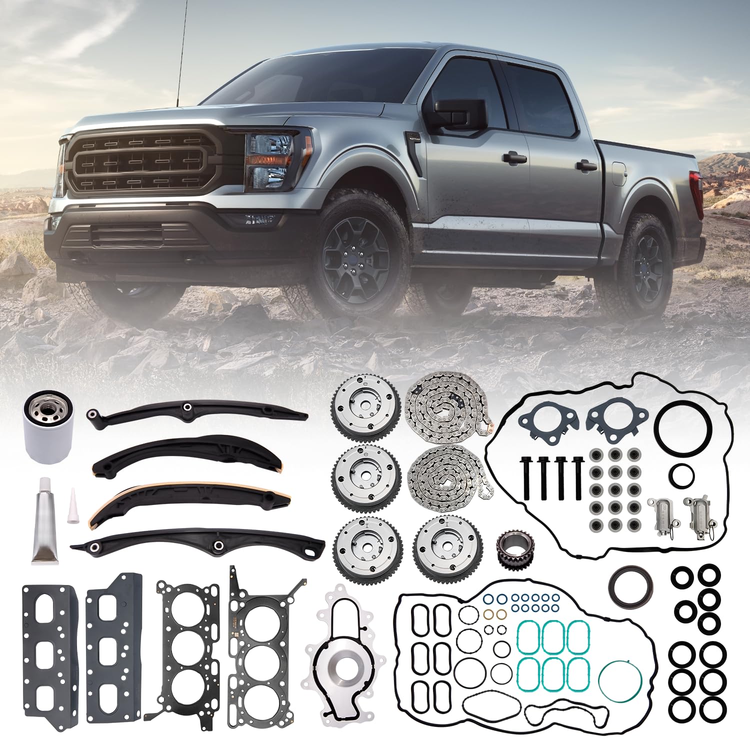 HL3Z-6268-A Complete Engine Timing Chains Kit Compatible with Ford F-150/Expedition/for Lincoln Navigator 3.5L Ecoboost V6 with Water Pump, Head Gasket, Sprockets Replace ML3Z-6256-A, ML3Z-6C525-A