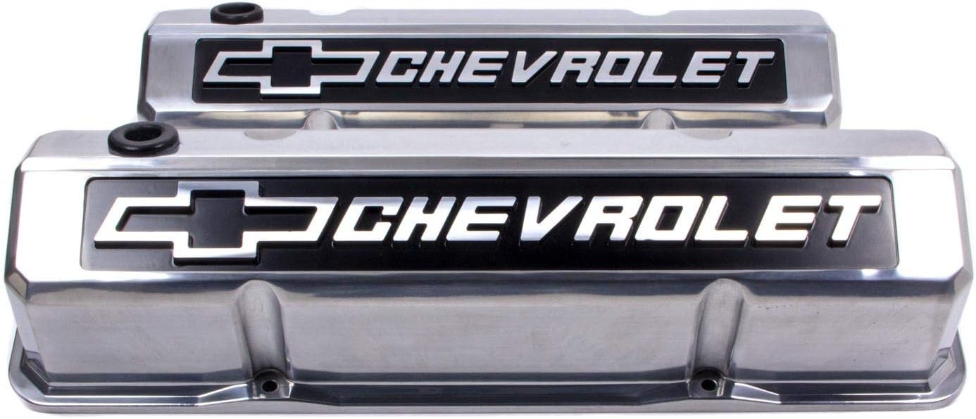 ProForm Valve Cover, Slant-Edge, Tall, Baffled, Breather Hole, Raised Chevrolet Bowtie Logo, Aluminum, Polished, Small Block Chevy, Pair (141-920)