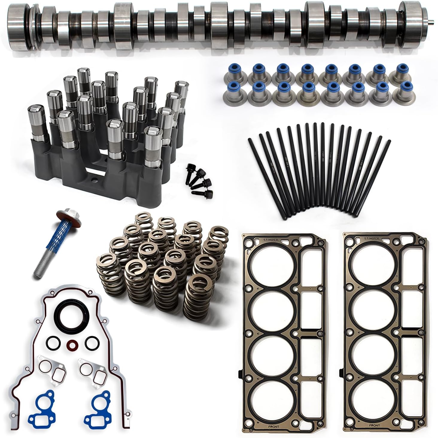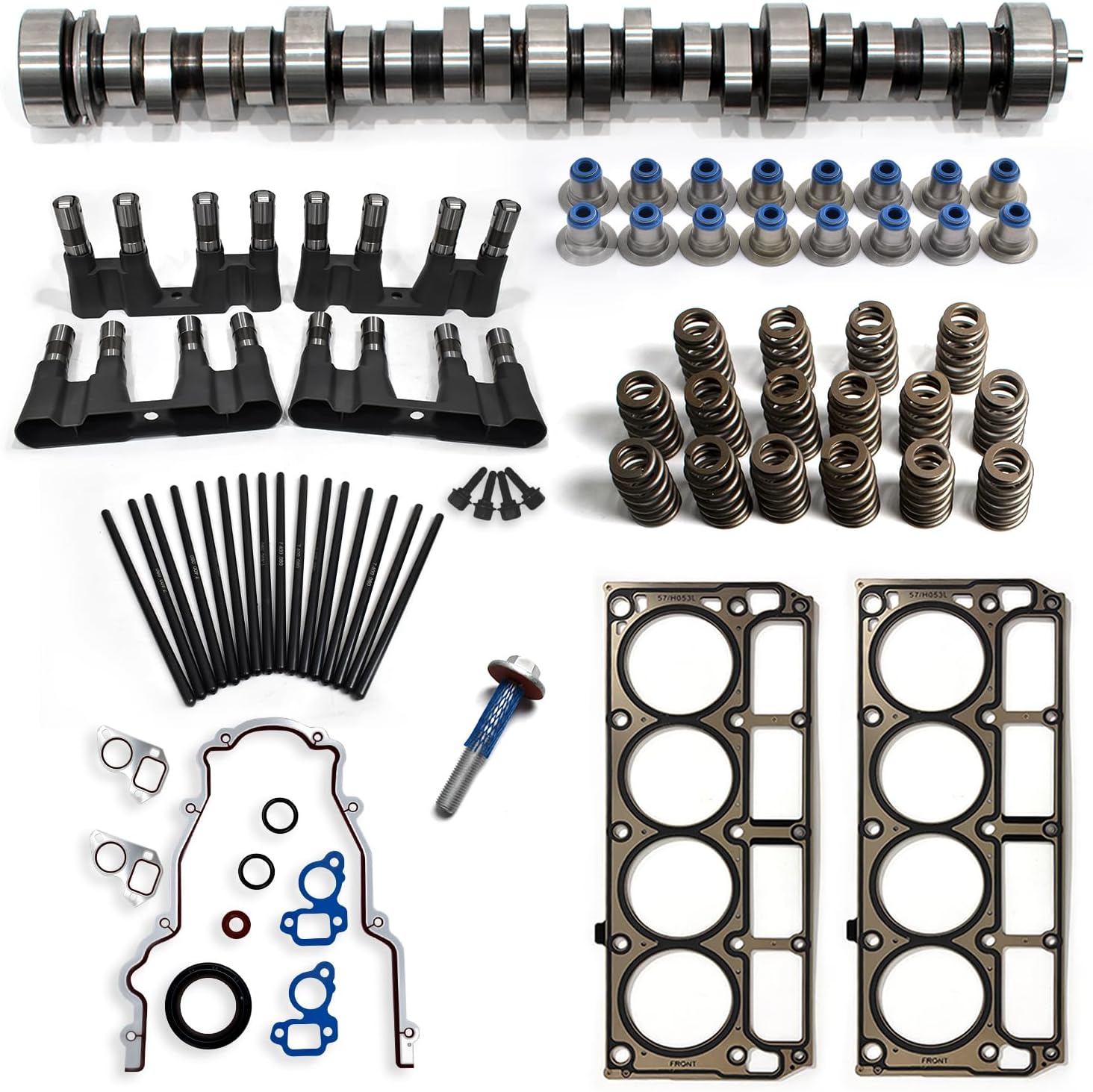 Sloppy Stage 2 Camshaft Kit Fit for Chevrolet GMC 1997-2013 4.8L 5.3L 5.7L 6.0L LS1, LS2, LS6, LQ4, LQ9, LM7 LS Cam Kit Gen Ⅲ/Ⅳ, Includes Head Gasket, Lifters, Gasket, Springs, Pushrods