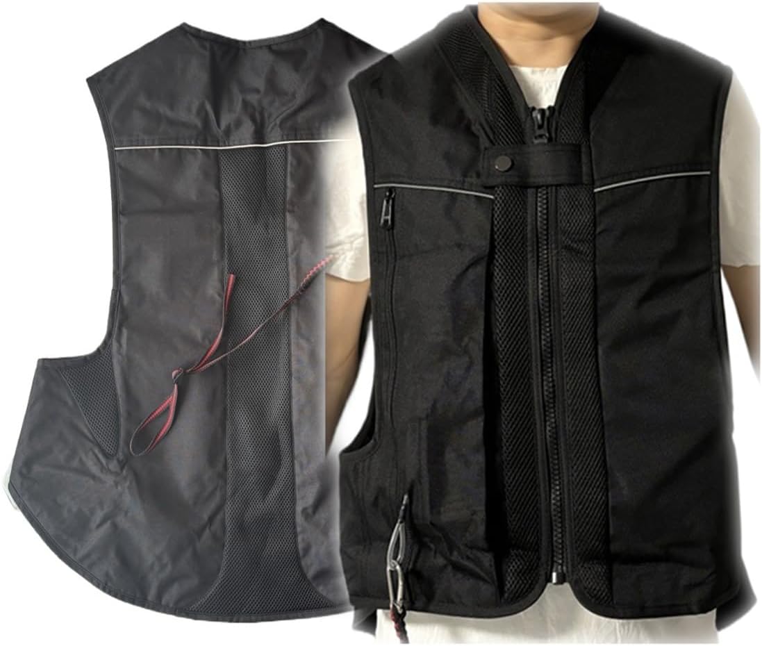 Adjustable Motorcycle Airbag Vest Safety Gear Breathable, Reusable Inflatable Airbag Coat For Equestrian Sports(Preto,Small)