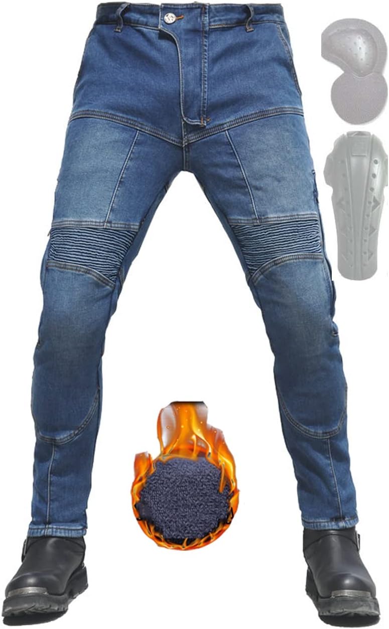 Motorcycle Riding Jeans Ms. Strengthen Jeans Aramid Knee Bag, Wear Resistant, Tear Knee Height Adjustable (Color : Blue, Size : Large)
