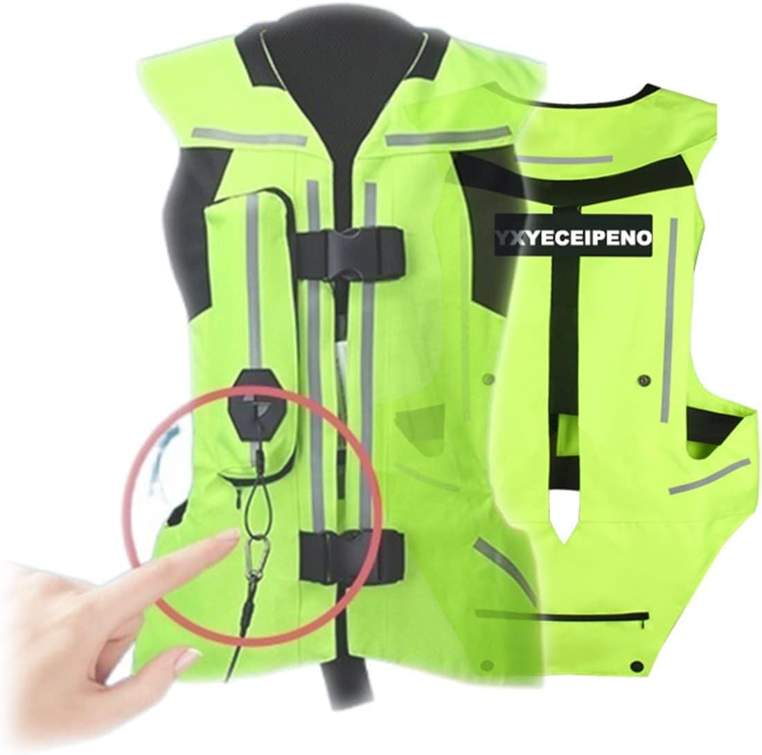Motorcycle Airbag Vest Reflective Inflatable Air Vest Biker Jackets for Grown Men, Women All-Season Riding, Equestrian Gear (Color : Green, Size : XX-Large)