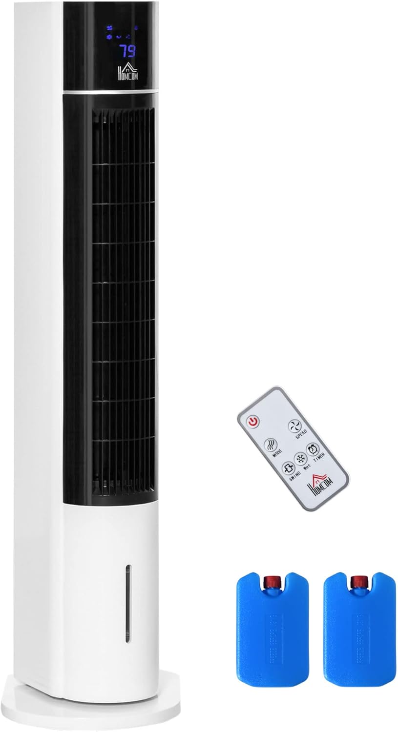 HOMCOM 42" 3-In-1 Evaporative Air Cooler, Ice Cooling Fan with Humidifier and with Water Tank, 60° Oscillating Portable Swamp Cooler for Home Office, 3 Modes, 3 Speeds, 12H Timer, Remote, White