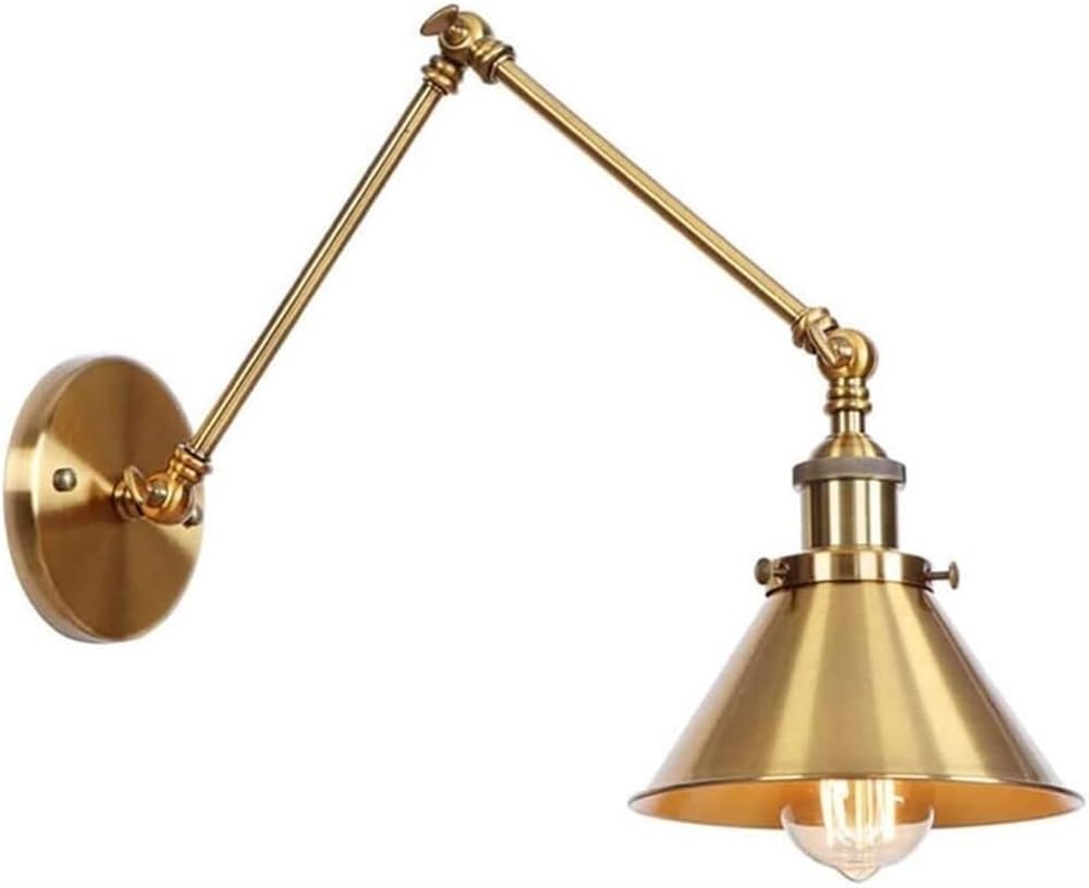 Antique Industrial Adjustable Swing Arm Wall Sconce, Long Arm Metal Wall Light, Vintage Wall Lamp Lighting Fixture for Restaurants, Galleries, Aisle, Kitchen, Doorway(Gold)