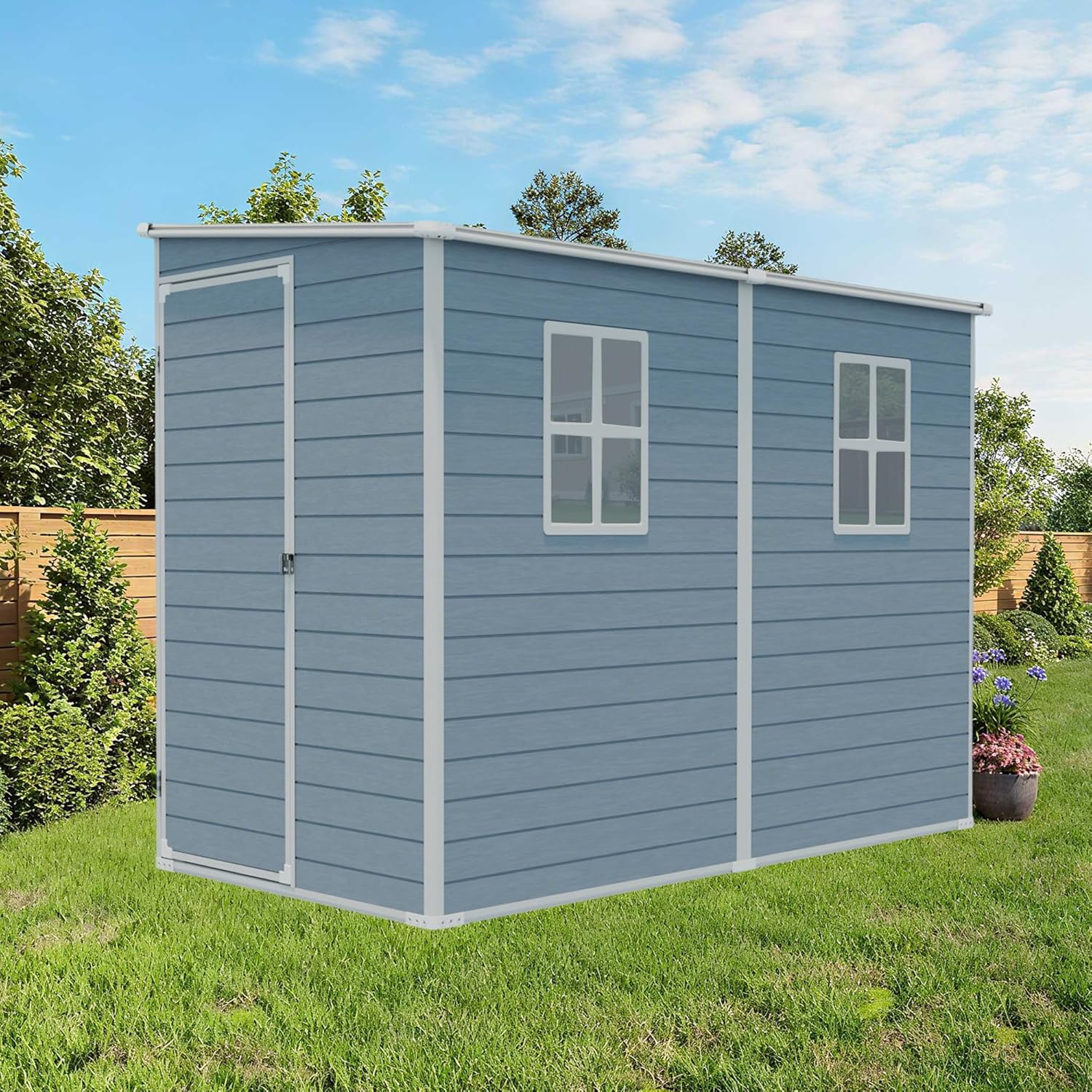 6FTx4FT Apex Roof Green Outdoor Tool Storage Shed with Aluminum Alloy Frame and Sliding Door