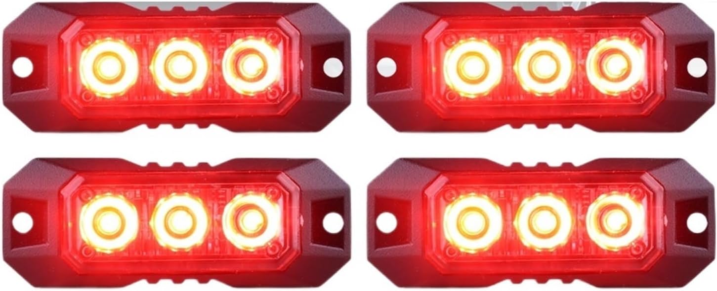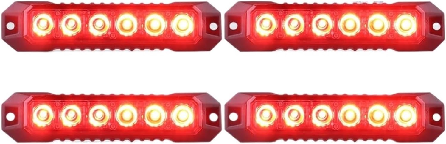 4PCS 6LED Car Emergency Flashing Strobe Warning Signal Grille Lights Compatible with Windshield Trailer Beacon Vehicle Indicators Waterproof(Red)