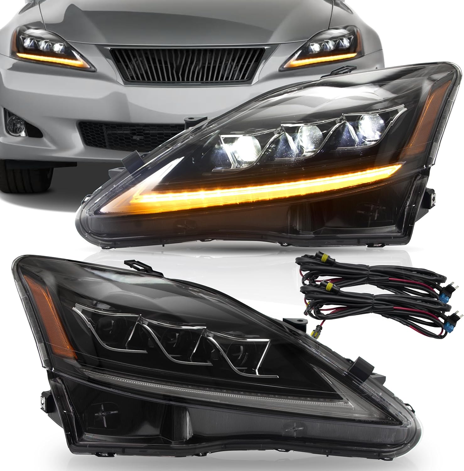 VLAND Headlights Assembly Fit for IS250/ IS250C IS350 IS350C IS220d 2006-2012, ISF 2008-2014 W/DRL, LED Front light with Sequential Turn Signal, Plug-n-Play Amber Headlamp