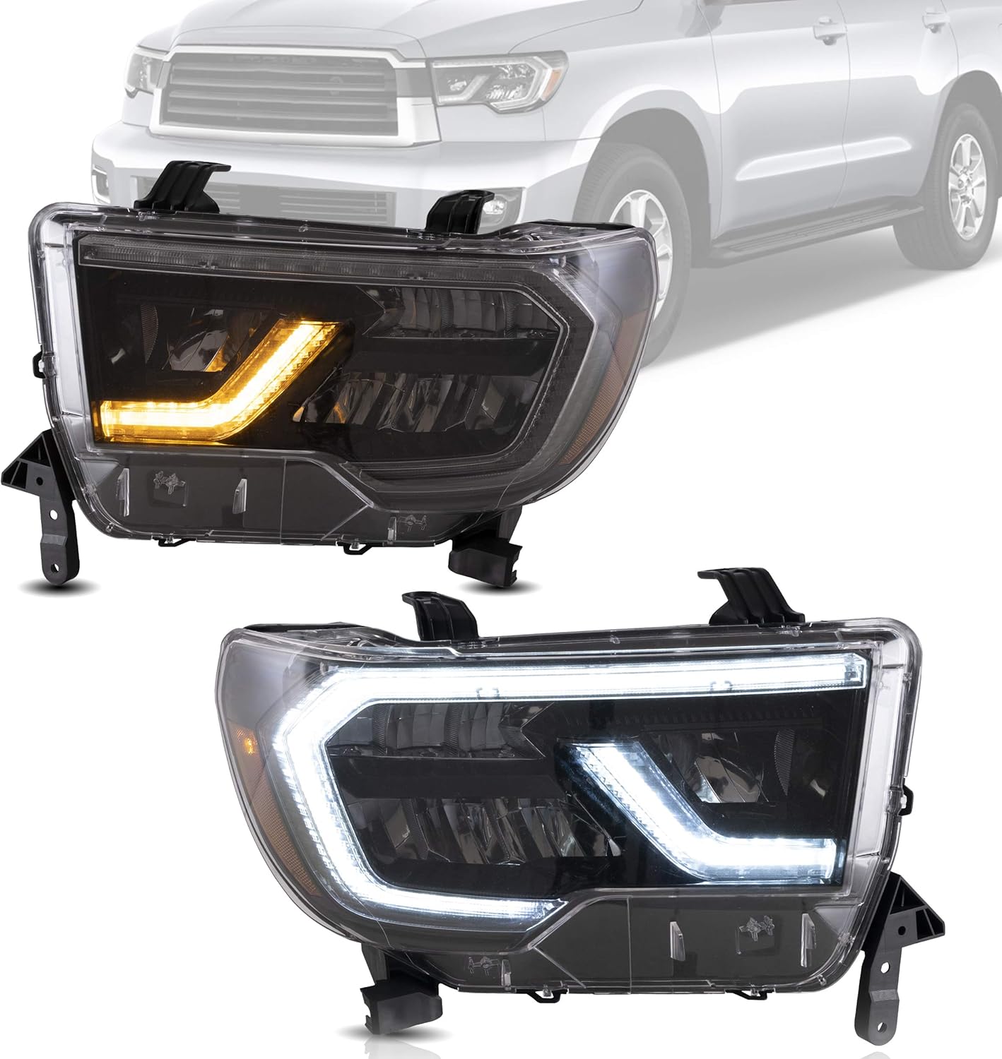 VLAND Headlights Assembly Fit for 2007-2013 TOYOTA TUNDRA Headlamp Assembly for 2008-2017&2018 2019 2020 SEQUOIA with Sequential Turn Signal Reverse Lights Plug-and-play
