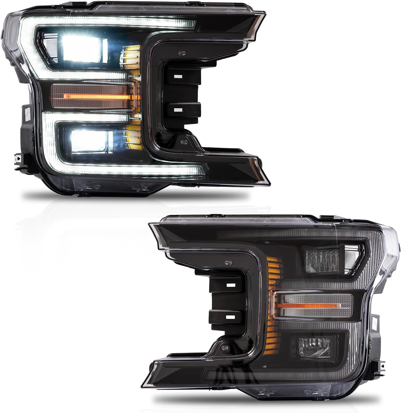 VLAND Headlights Assembly Fit for Ford F150 2018-2020, XL, XLT, Platinum, Lariat, Limited, SSV, King Ranch, Full LED Headlamp with DRL, Sequential Turn Signal, Plug-and-play, Black
