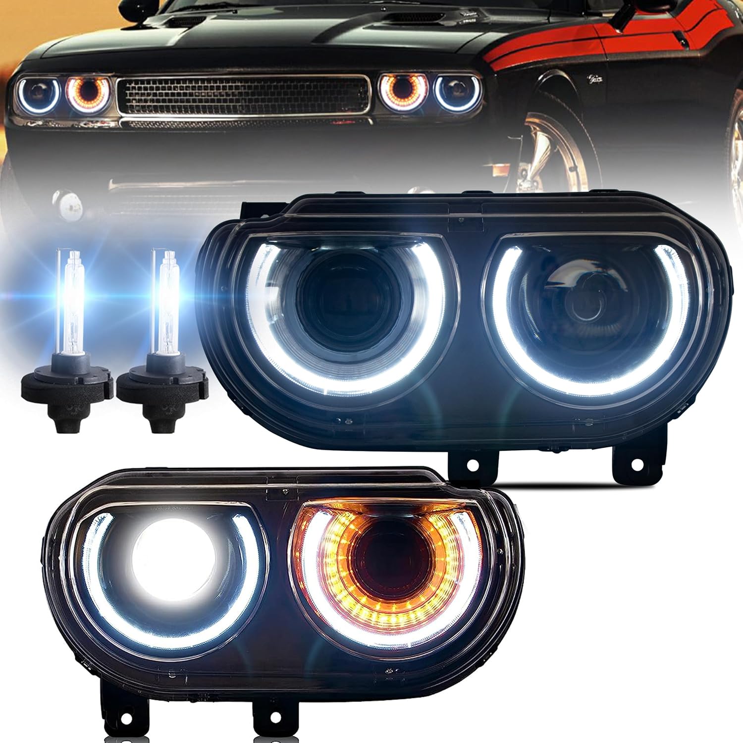 VLAND Headlight Assembly Fit for 2008-2014 Dodge Challenger 3rd Gen Coupe, Plug-and-play, Normal/D2H