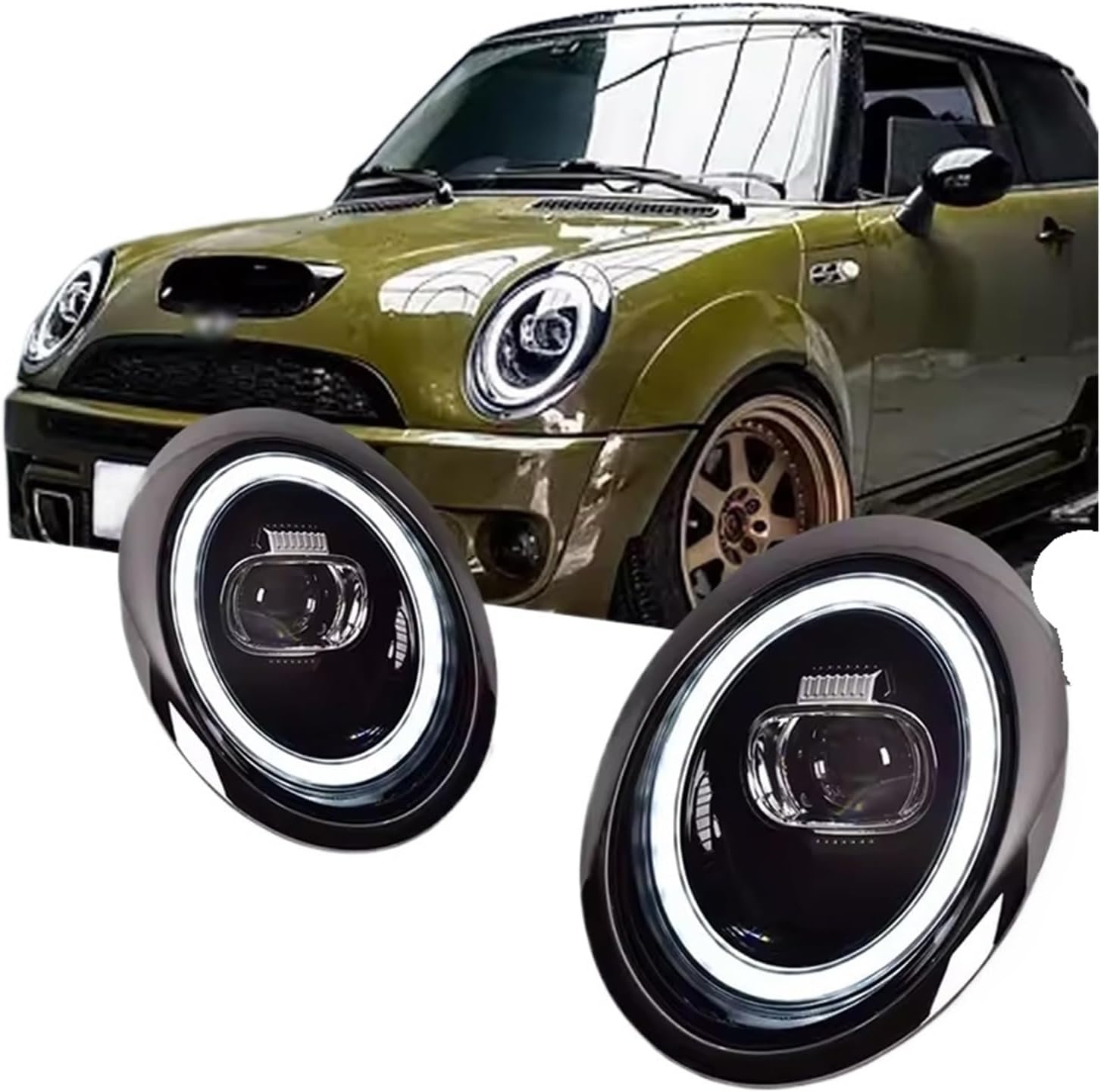 LED Car Headlight Compatible With Cooper R50 R52 R53 2001-2007 Modified Auto Headlamp Replace Xenon Halogen Plug And Play(2PCS Black,For Original Xenon)