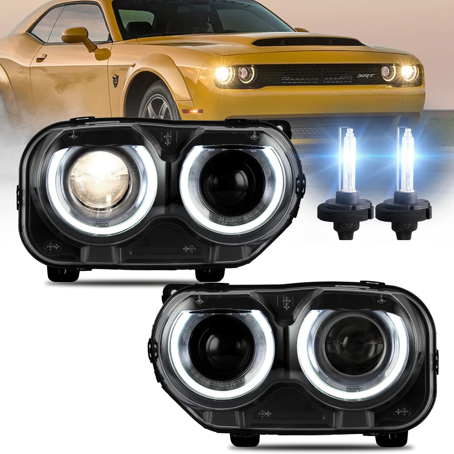 VLAND Headlight Fit for 2015-2024 Dodge Challenger SRT Hellcat Coupe 3rd Gen SE RT, Plug-and-play, Normal/D2H