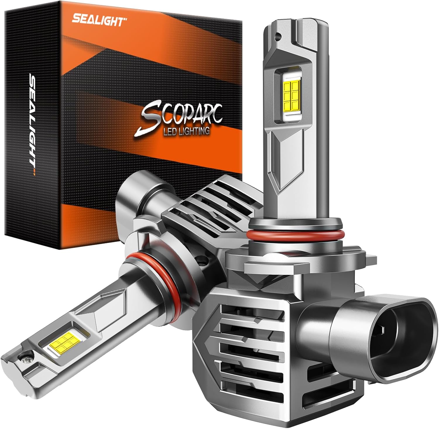 SEALIGHT 𝟗𝟎𝟎𝟓 𝐇𝐞𝐚𝐝𝐥𝐢𝐠𝐡𝐭 𝐁𝐮𝐥𝐛𝐬 Brightest Bulbs 60000Hrs Lifespan for ATVs & Powersports Wireless with Cooling Fan, Diamond White 60000LM Output, 1:1 Size Plug-N-Play, Pack of 2