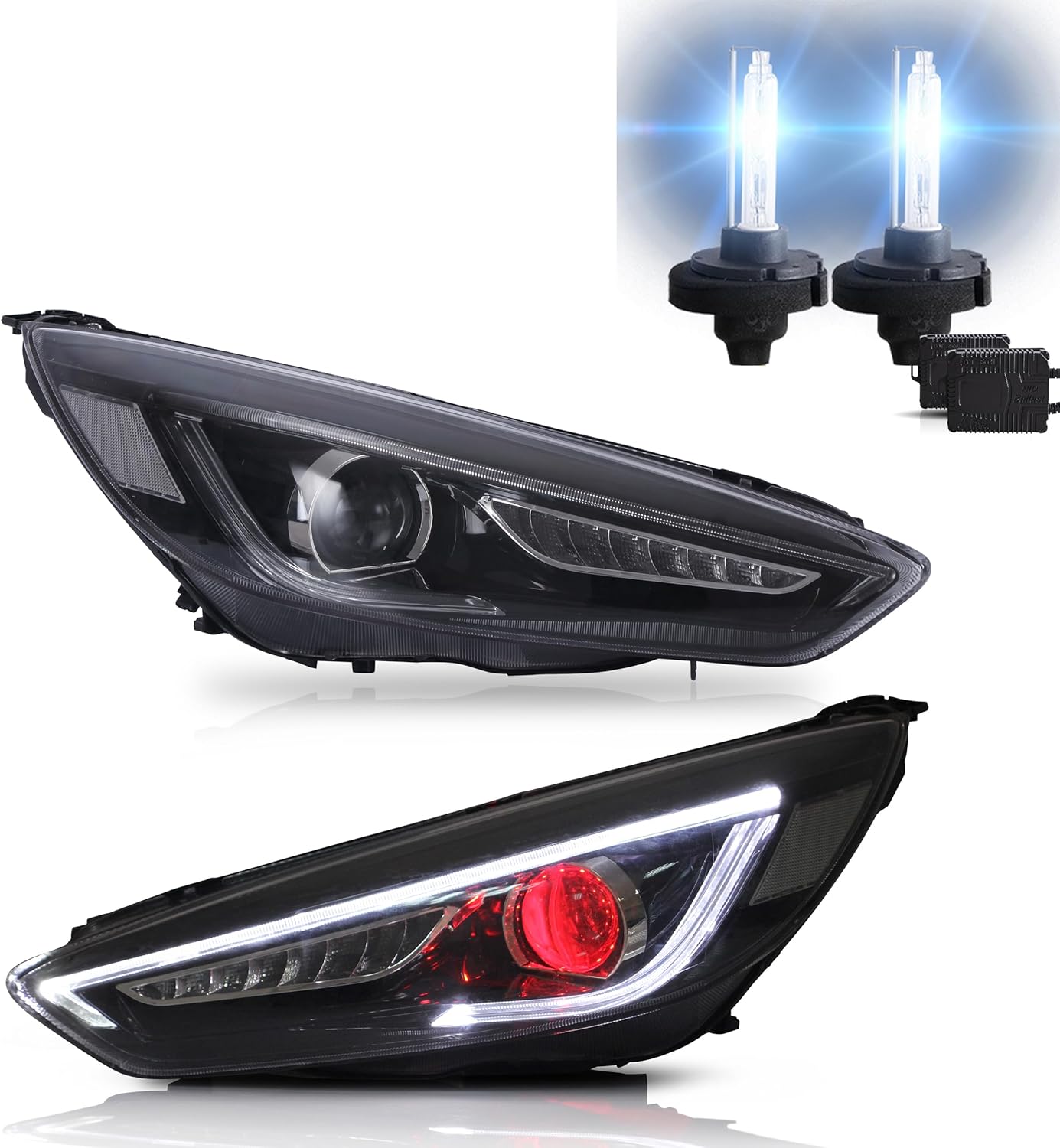 VLAND Headlight Assembly Fit for Ford Focus 2015 2016 2017 2018 LED Headlights With Turn Signal,LED DRL light, Plug-and-play(Demon Eyes)