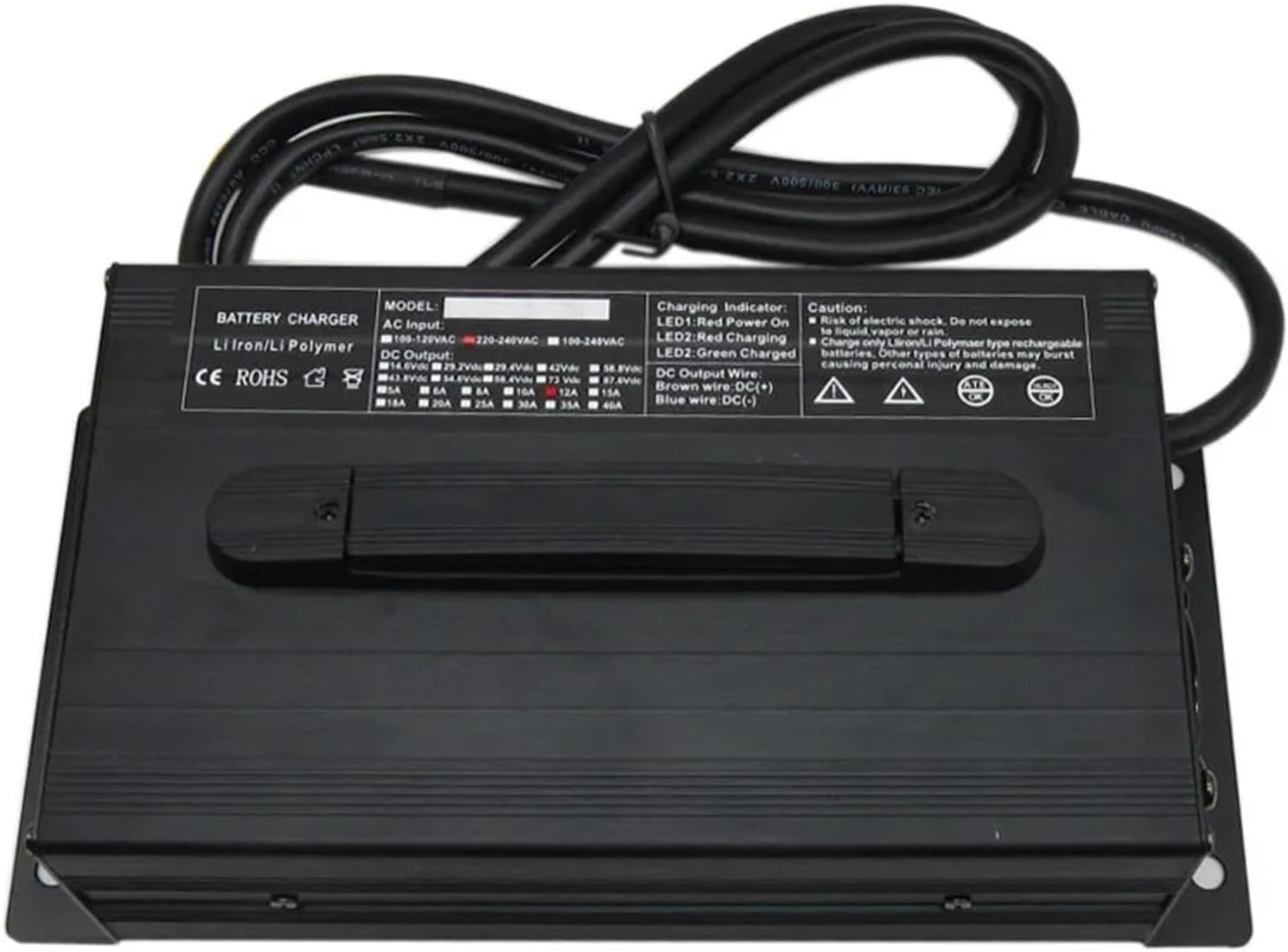 CAARLA Charger Aluminum Lithium Ion Battery 58.4 V 30A Intelligent Charger Suitable for 48 V P+F+C 16S 51.2V LiFePO4 high Current Charger L+C+D Display Electric Motorcycle(Tinned 25mm,U.K)