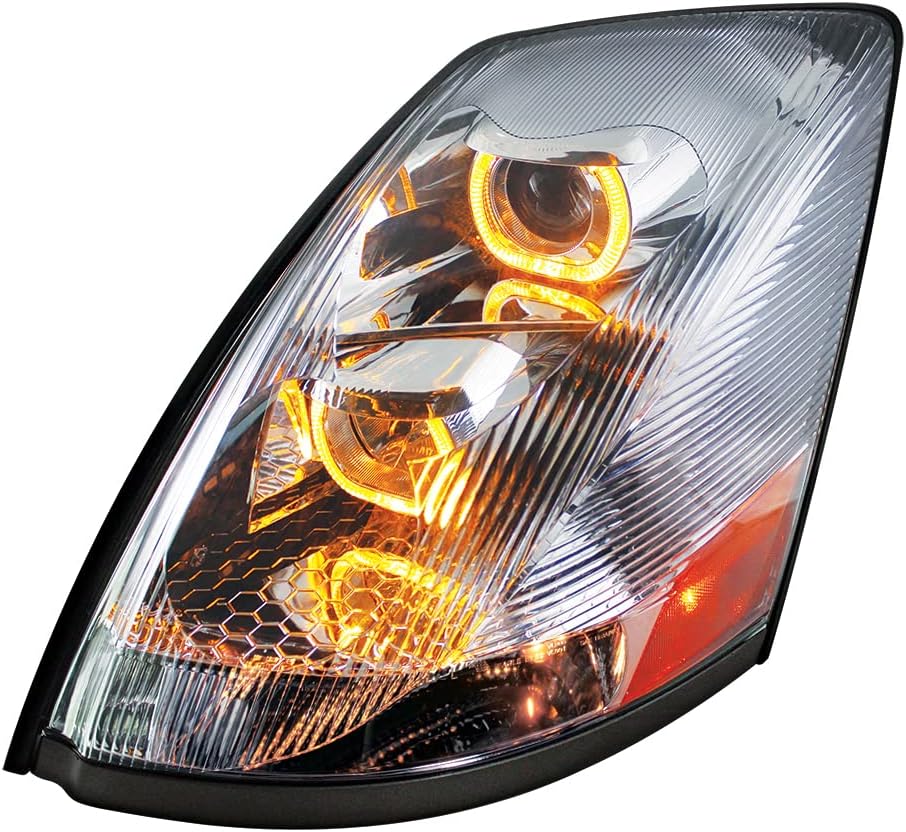 UNITED PACIFIC 31230 Projection Headlight Assembly, LH, Chrome Housing, High/Low Beam, with Amber LED Light Bar