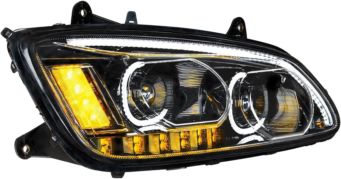 United Pacific 35774 Projection Headlight Assembly, RH, LED, Black Housing, High/Low Beam, with Amber LED Turn Signal, White LED Position Light Bar and Amber LED Marker Light