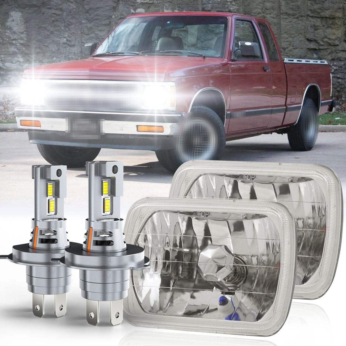 CHUSYYRAY Pair 5x7 7x6 Lamp Compatible with Chevy S10 Blazer GMC S15 LED Headlight Assembly 1982-1993 for Off-road, DOT Approved, Hi-Lo Beam 500% Brightness, 80W 6000K 10000LM White