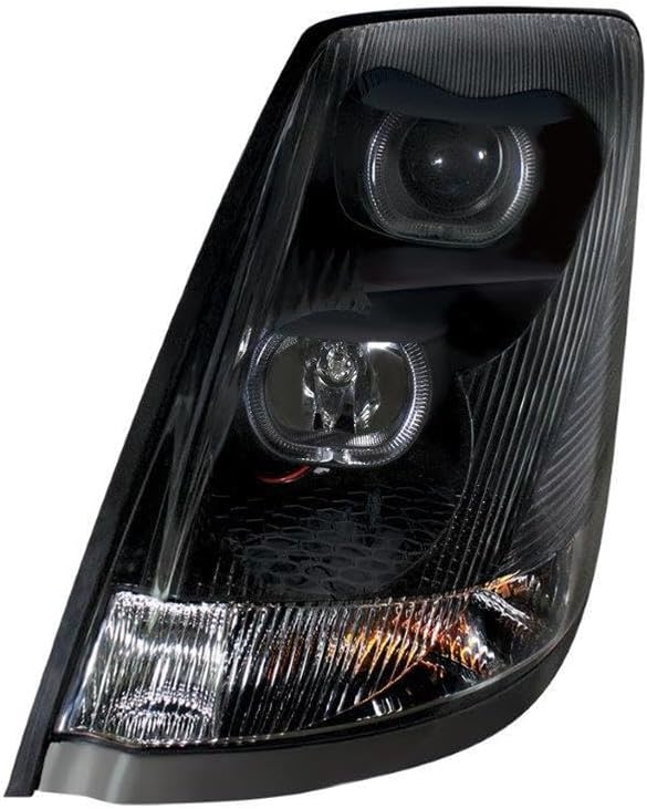 United Pacific 31268 Projection Headlight Assembly, LH, Black Housing, High/Low Beam, H7/H1/3157 Bulb, with Signal Light and White LED Position Light Bar