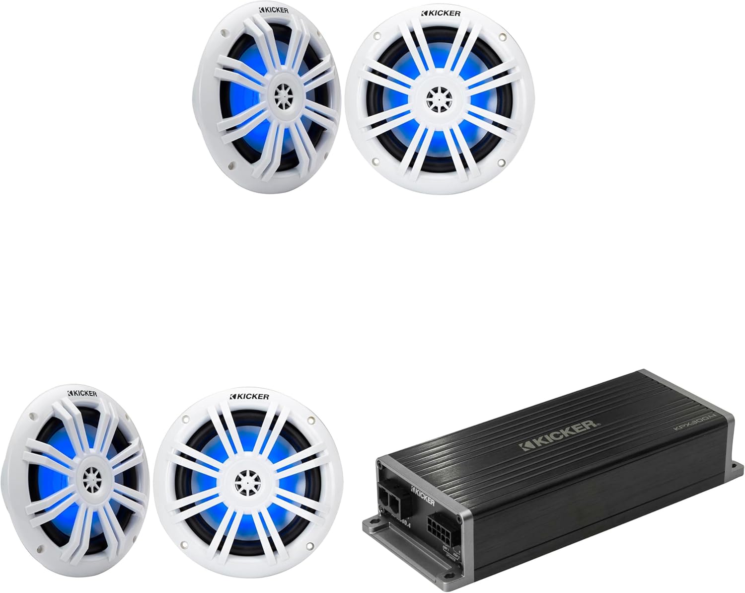 Kicker Marine KPX300.4 Powersports Amp & (2) 6.5" White Marine LED Speakers