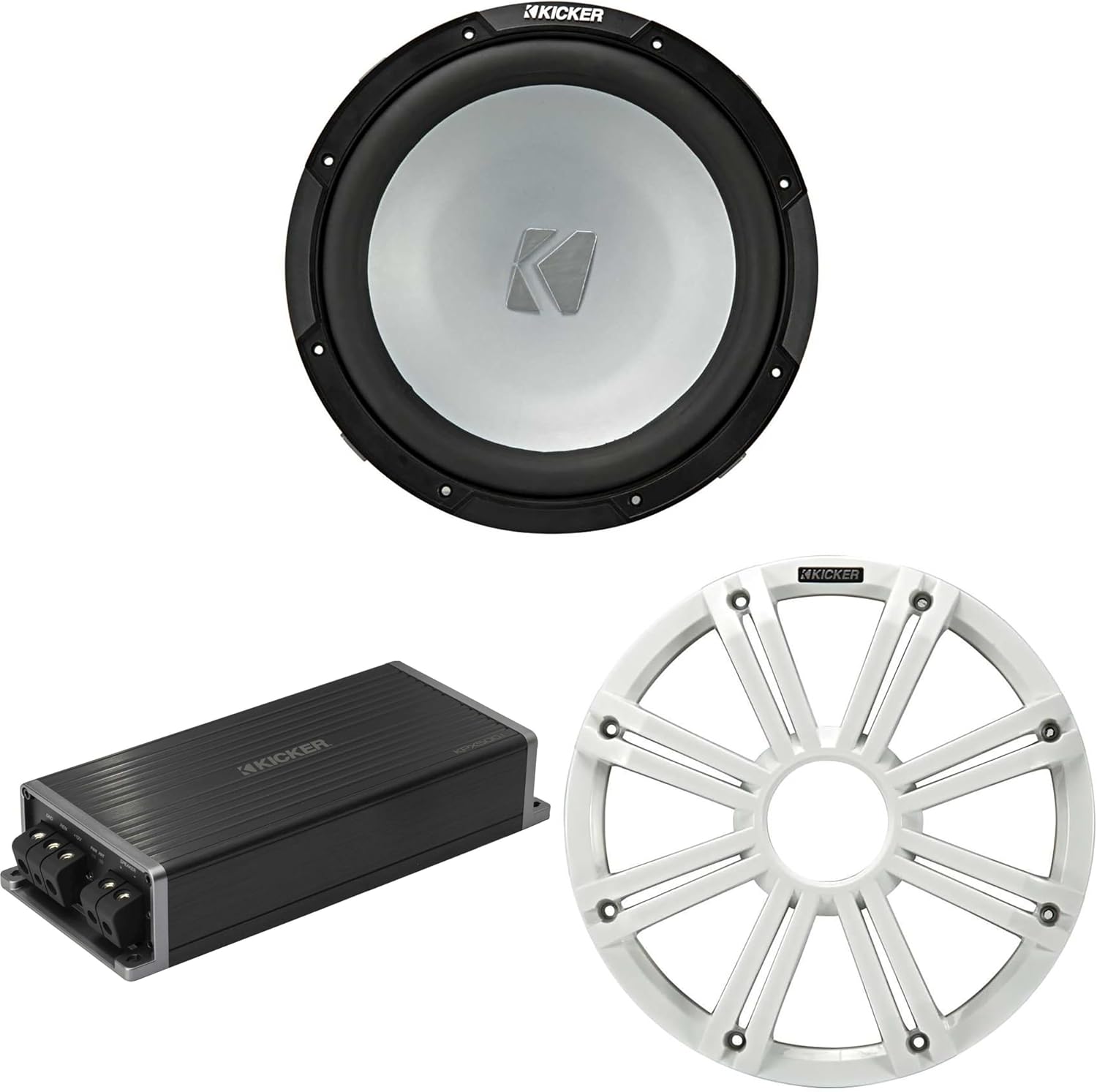 Kicker Marine KPX500.1 Powersports Amp & 12" Free Air 2 Ohm (White Grill) Subwoofer Audio Upgrade