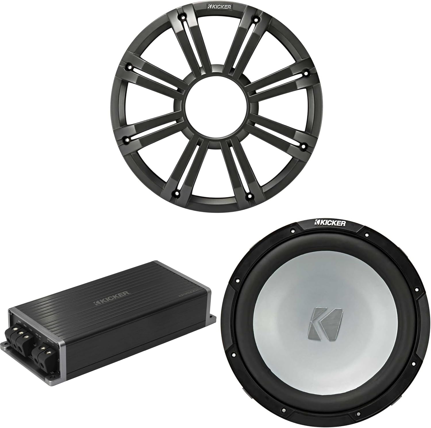 Kicker Marine KPX500.1 Powersports Amp & 12" 4 Ohm (Charcoal Grill) Subwoofer Audio Upgrade