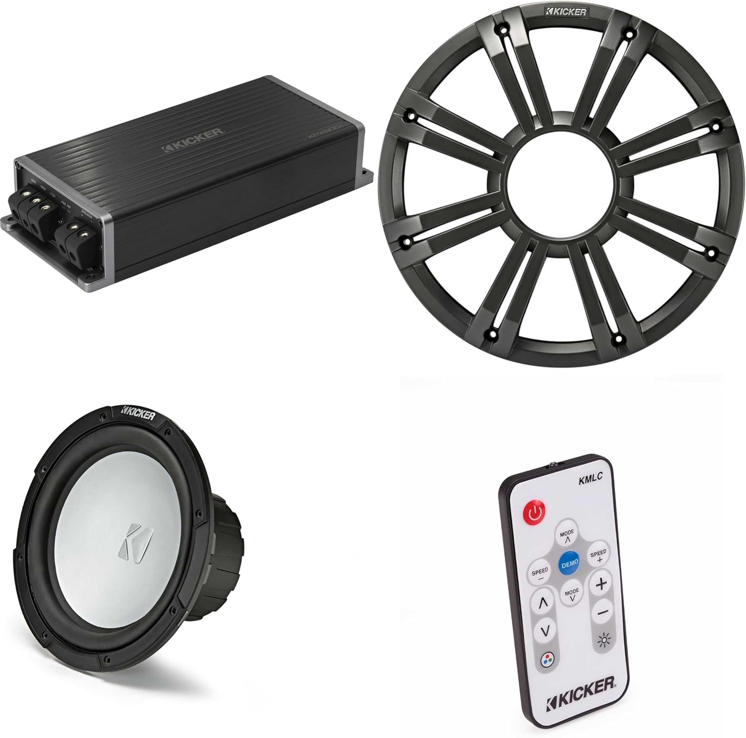 Kicker Marine KPX500.1 Powersports Amp & 10" 4 Ohm (Charcoal Grill) Subwoofer Audio Upgrade, Includes LED Remote