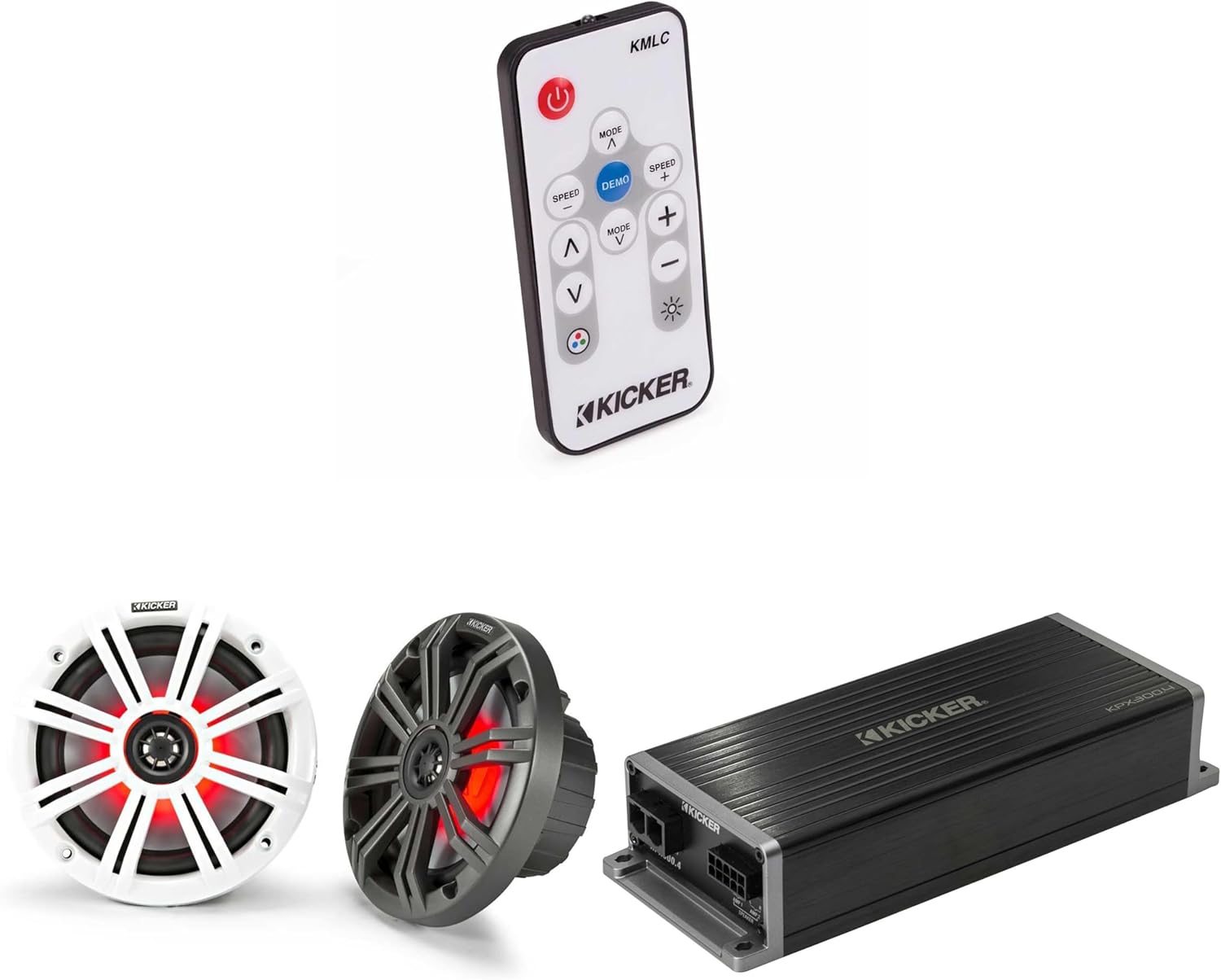 KICKER Marine KPX300.4 Powersports Amp & 6.5" Marine LED Speakers (Includes LED Remote)