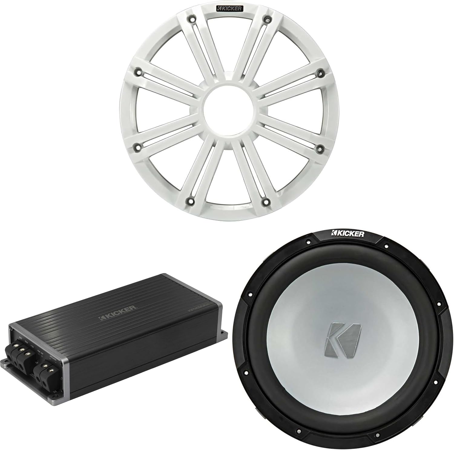 Kicker Marine KPX500.1 Powersports Amp & 12" 4 Ohm (White Grill) Subwoofer Audio Upgrade