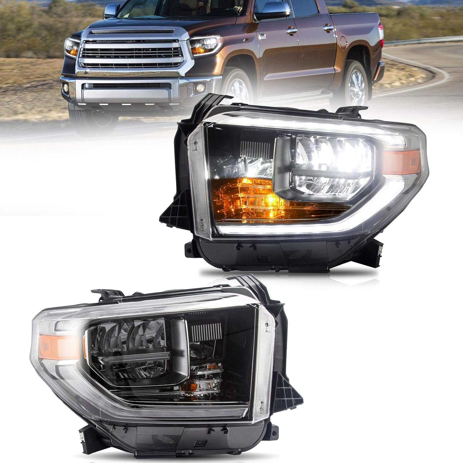 VLAND Headlights Assembly Fit for 2007-2013 Toyota Tundra 2nd Gen(XK50), 2008-2021 Sequoia SR5 2nd Gen(XK60), Reflector/Amber