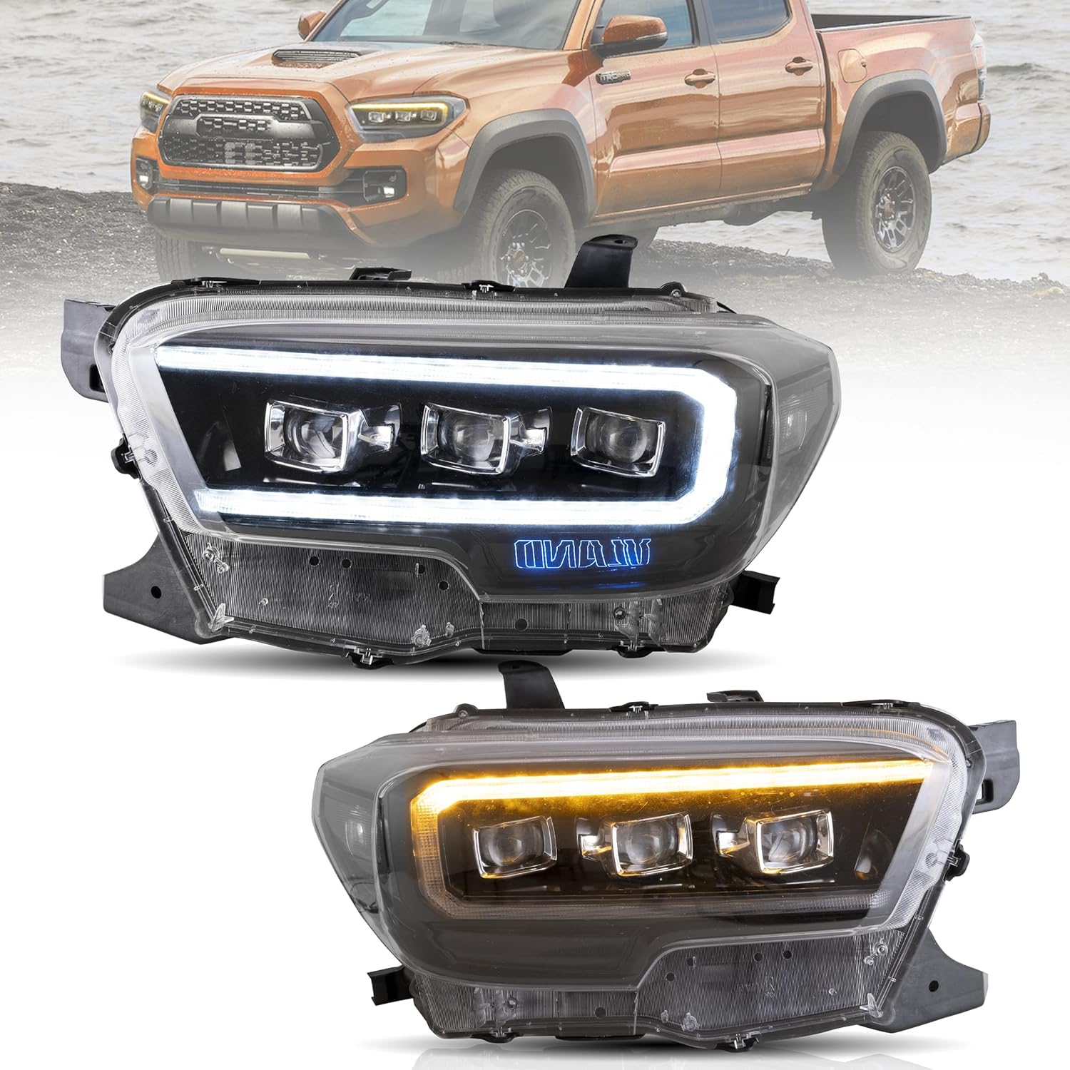 VLAND Headlights Assembly Fit for 2016-2023 Toyota Tacoma 3rd Gen N300, Projector/Clear